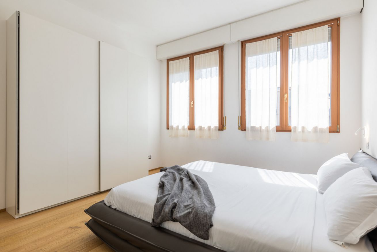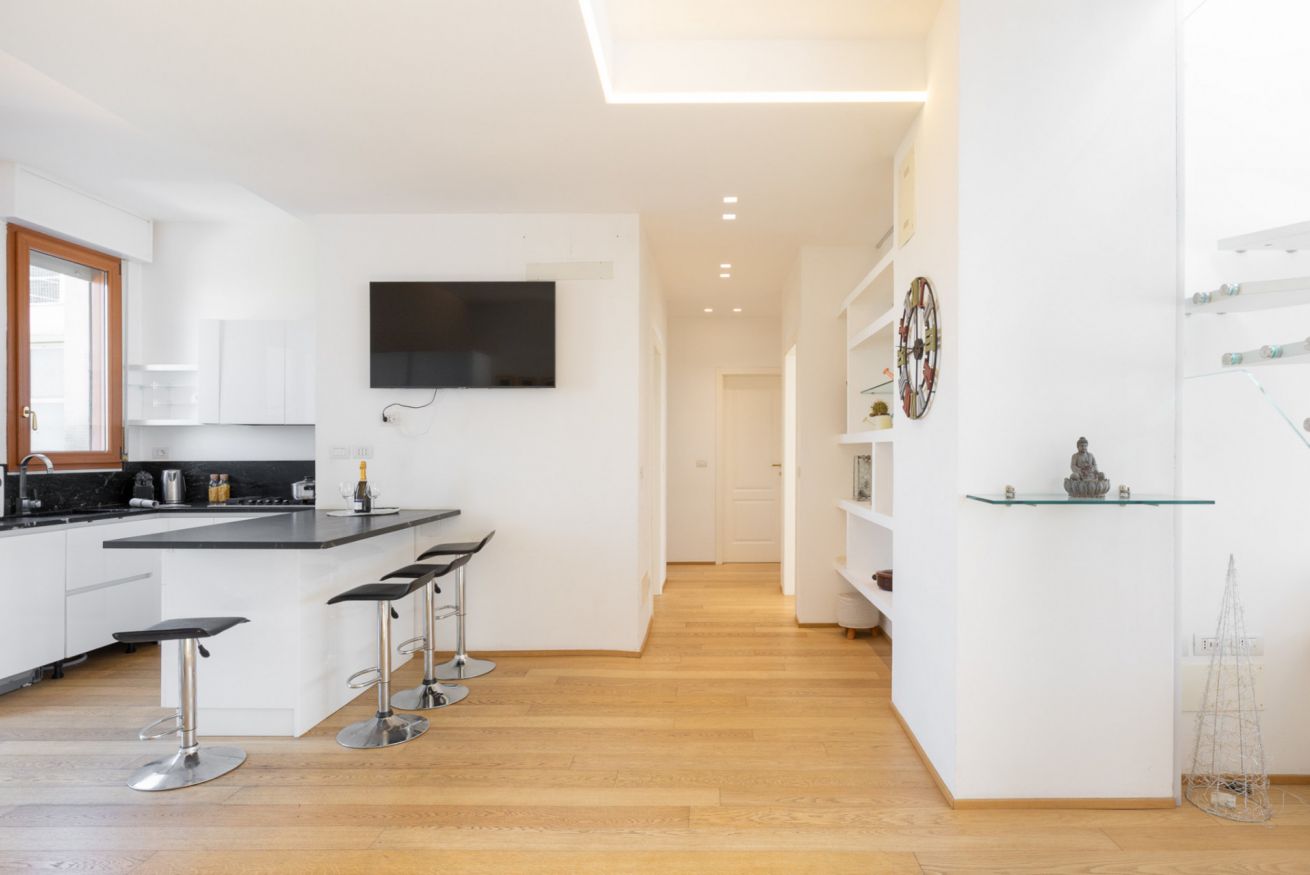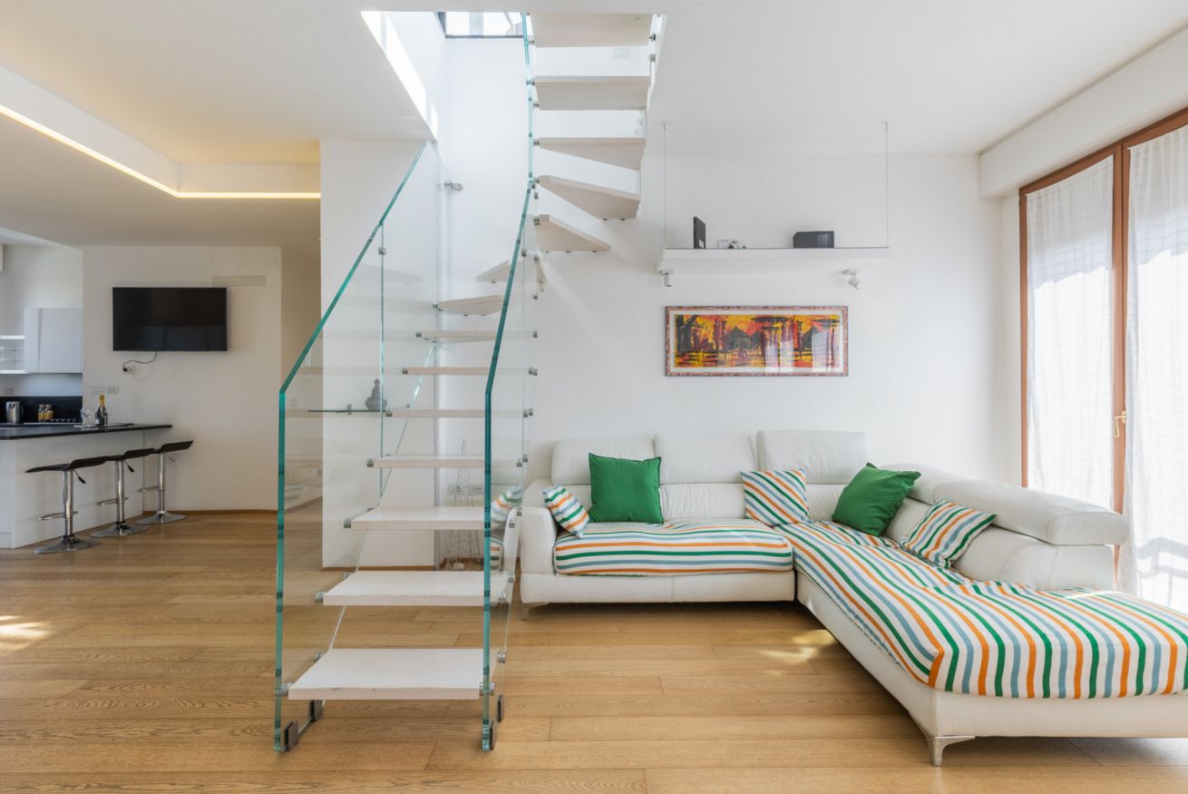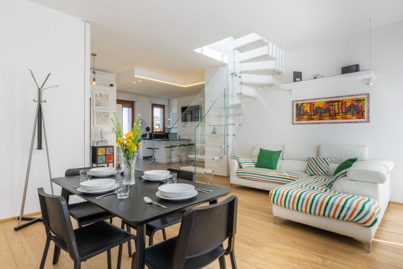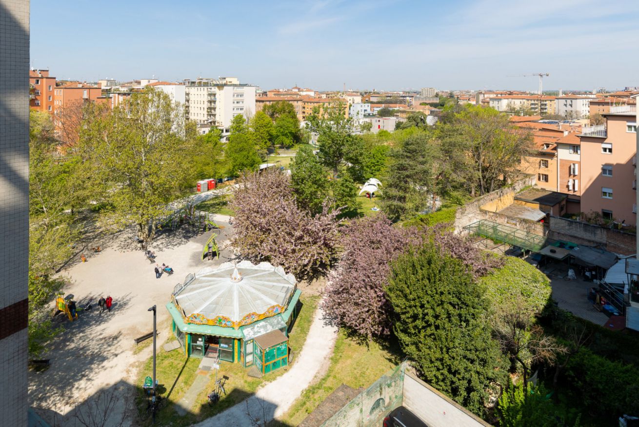 L'appartamento Riva Reno 76 è uno spazioso trilocale di circa 85 mq recentemente ristrutturato e completamente arredato, che si trova al sesto piano di un palazzo del centro storico di Bologna a pochi passi da Via Ugo Bassi. L'appartamento dispone anche di una grande terrazza con vista sul parco 11 settembre. Si compone di una zona giorno molto spaziosa con un ampio angolo cottura, una camera matrimoniale, una camera doppia e due bagni. Dalla zona giorno, grazie ad un scala interna si può accedere alla terrazza che nelle giornate più miti consente di avere uno spazio esterno confortevole e funzionale. La cucina è completa di elettrodomestici e accessori per la preparazione dei cibi, in modo da assicurare agli ospiti la massima flessibilità per l'orario dei pasti. L'arredamento, estremamente versatile, può ospitare fino a 4 persone ed è stato studiato per rendere questa soluzione ideale per coppie, famiglie o viaggi di lavoro, potendo contare su tutti i confort di una suite di hotel.